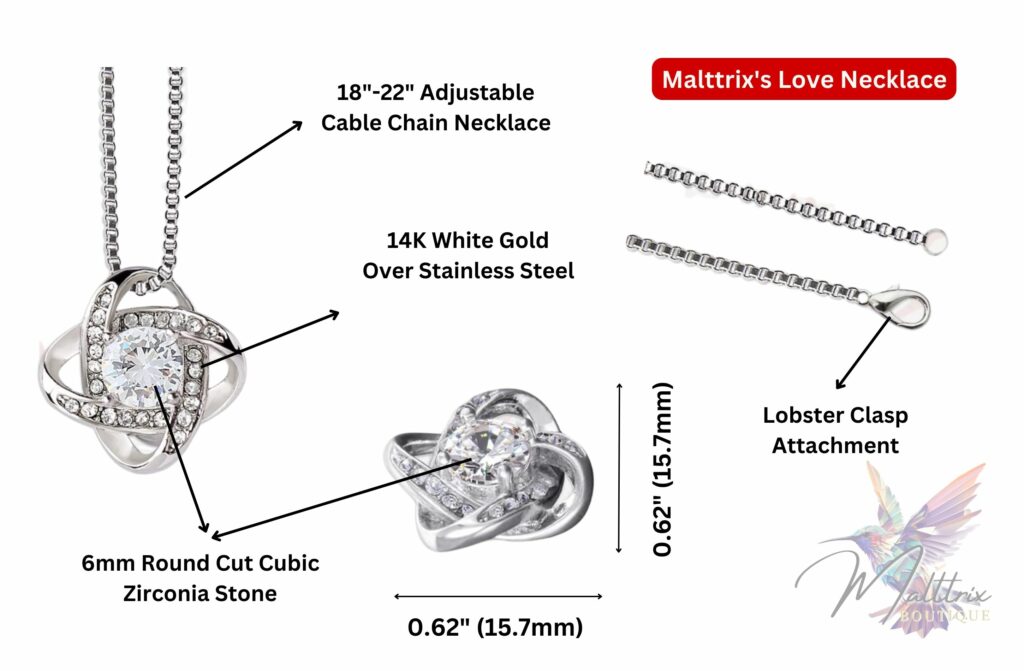 Let your love shine with Malttrix’s Love Necklace. This timeless piece represents the infinite bond between two souls, featuring a beautiful pendant adorned with premium cubic zirconia crystals. Show that special someone how much you care by gifting this meaningful, gorgeous piece of jewelry today! Make your special someone’s day unforgettable with this stunning gift today!