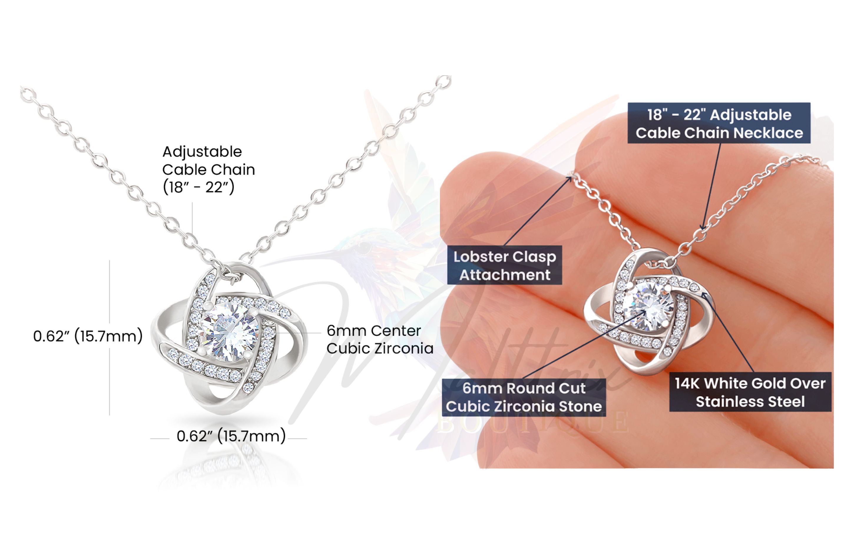 Let your love shine with Malttrix’s Love Knot Necklace. This timeless piece represents the infinite bond between two souls, featuring a beautiful pendant adorned with premium cubic zirconia crystals. Show that special someone how much you care by gifting this meaningful, gorgeous piece of jewelry today! Make your special someone’s day unforgettable with this stunning gift today!