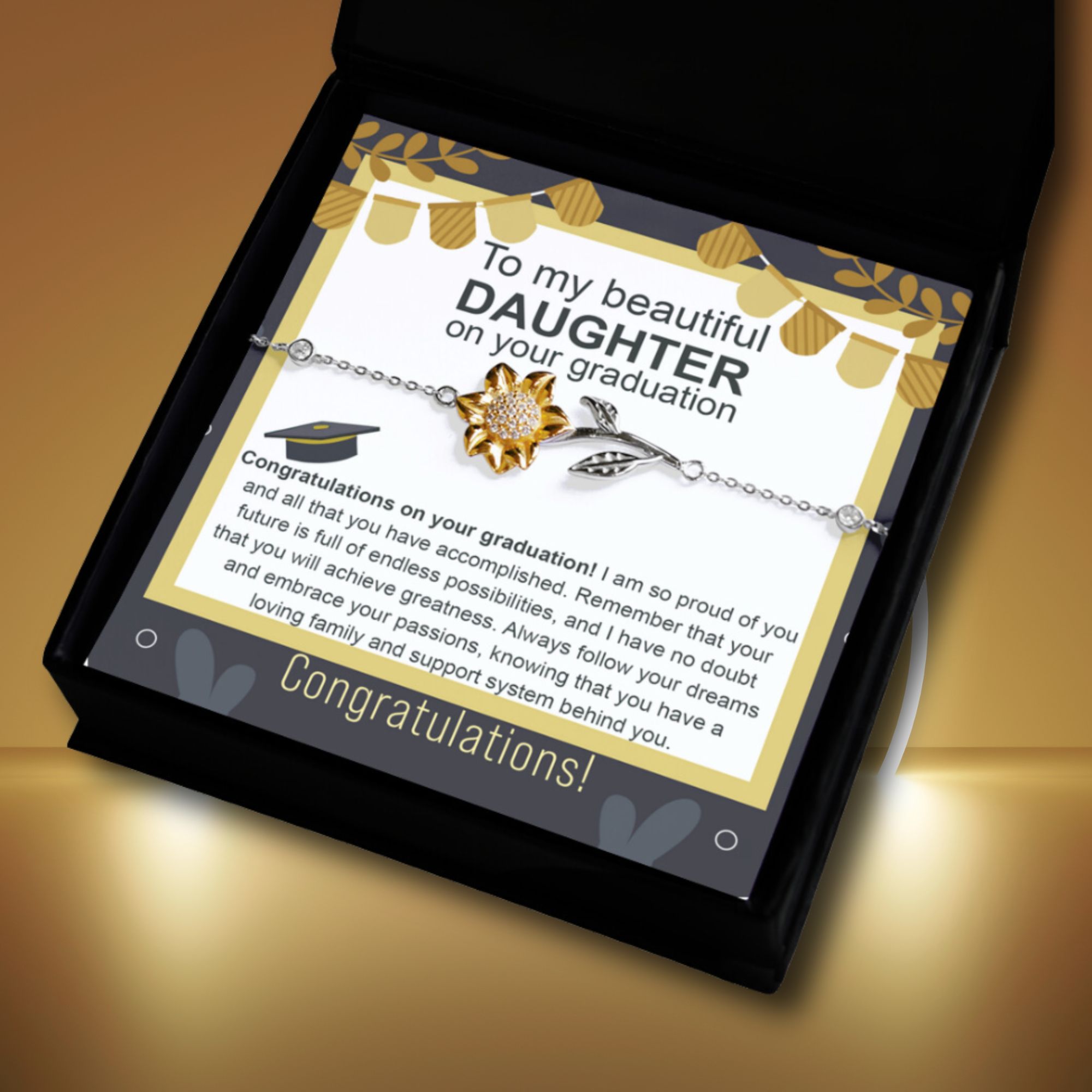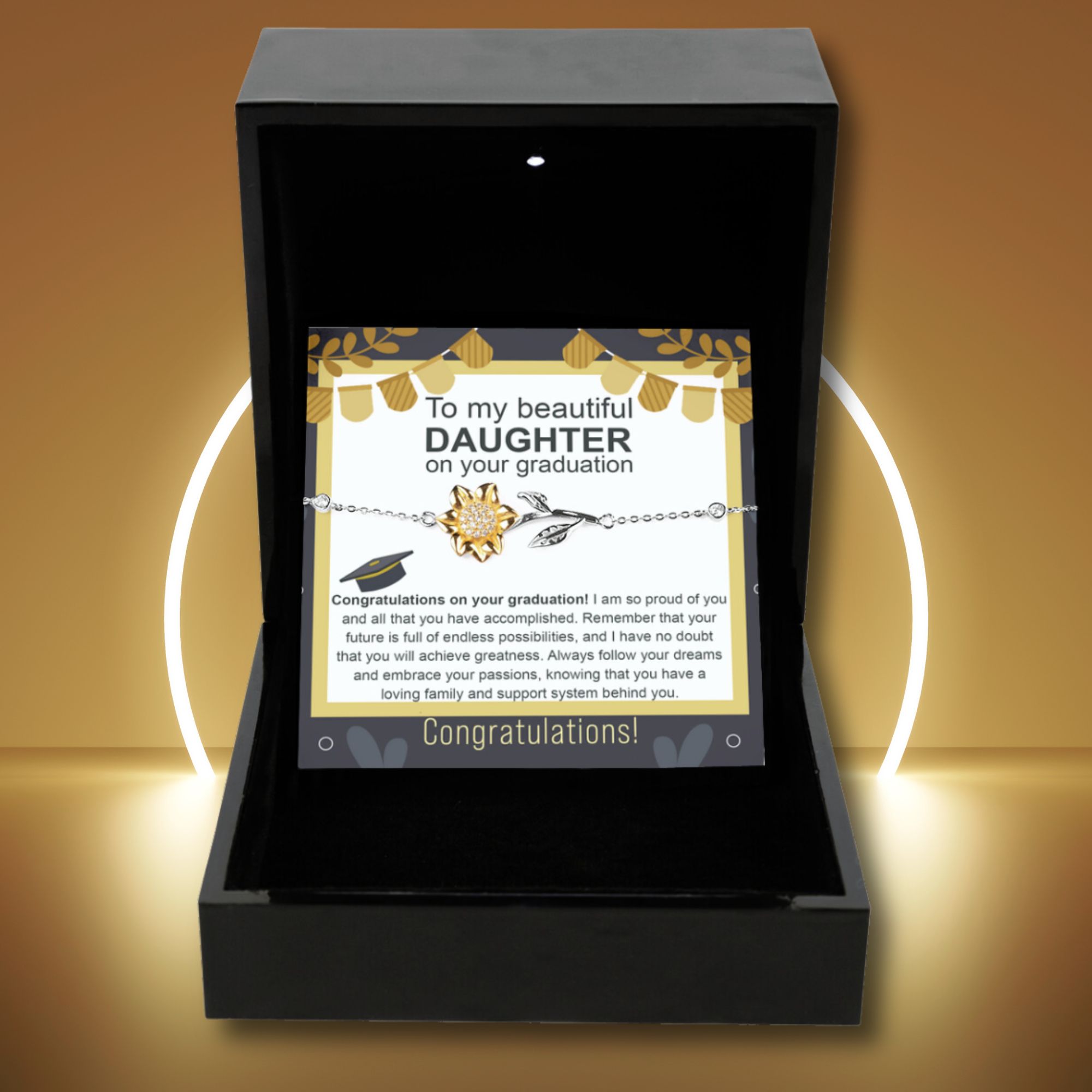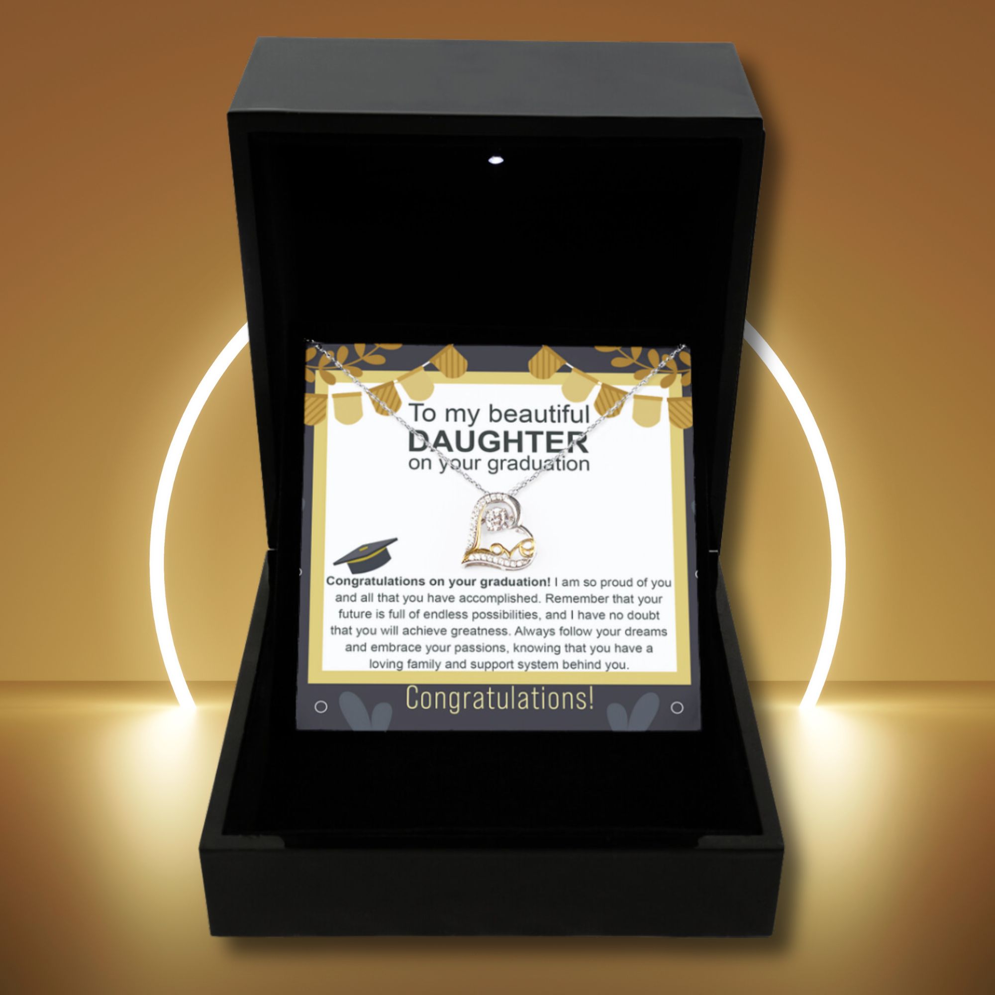 Your piece is lovingly packaged in a complimentary soft touch box for easy gifting. Elevate your presentation by upgrading to our luxury box, which features a brilliant LED spotlight.